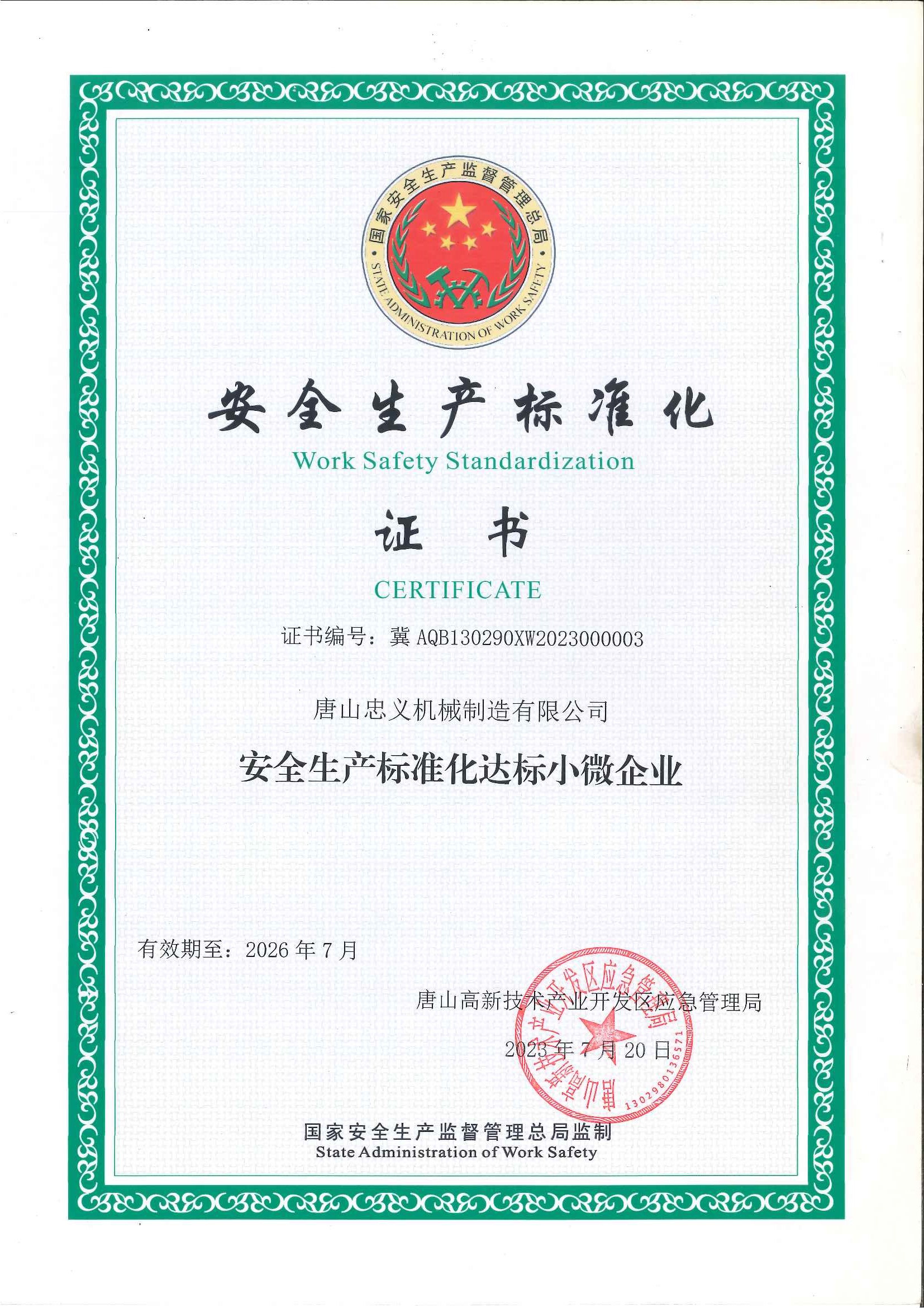安全生產(chǎn)標(biāo)準(zhǔn)化證書新 發(fā)布時間:2025-08-18 點(diǎn)擊: 167 上一條: ISO9001質(zhì)量體系認(rèn)證 下一條: 建材機(jī)械行業(yè)榮譽(yù)證書